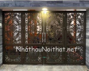 Nhà phố hiện đại: Ưu tiên mẫu cửa sắt 4 cánh CNC hoặc cửa sắt đơn giản, kết hợp sơn tĩnh điện màu ghi, đen hoặc trắng.